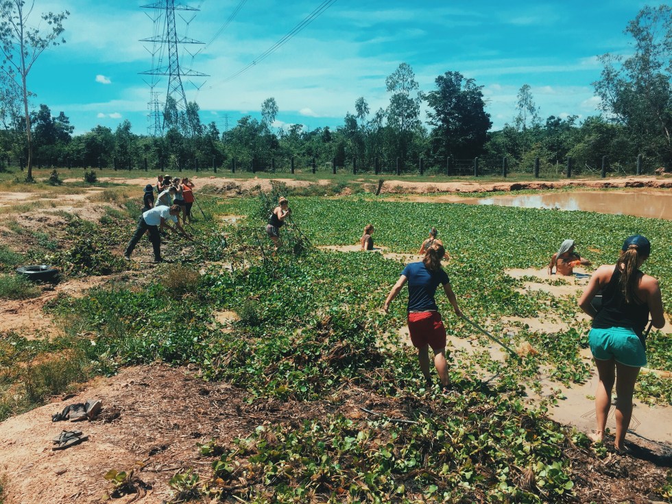 After breakfast we either had to go to harvest (cutting down banana trees and carrying the trees into a massive truck until the truck was full top to bottom) or we had to do “special projects.” I think special projects should be re titled, “projects that nobody wants to do, but needs to be done.” One day we weeded all of the locus out of a gigantic swimming hole full of swimming spiders, and other bugs.