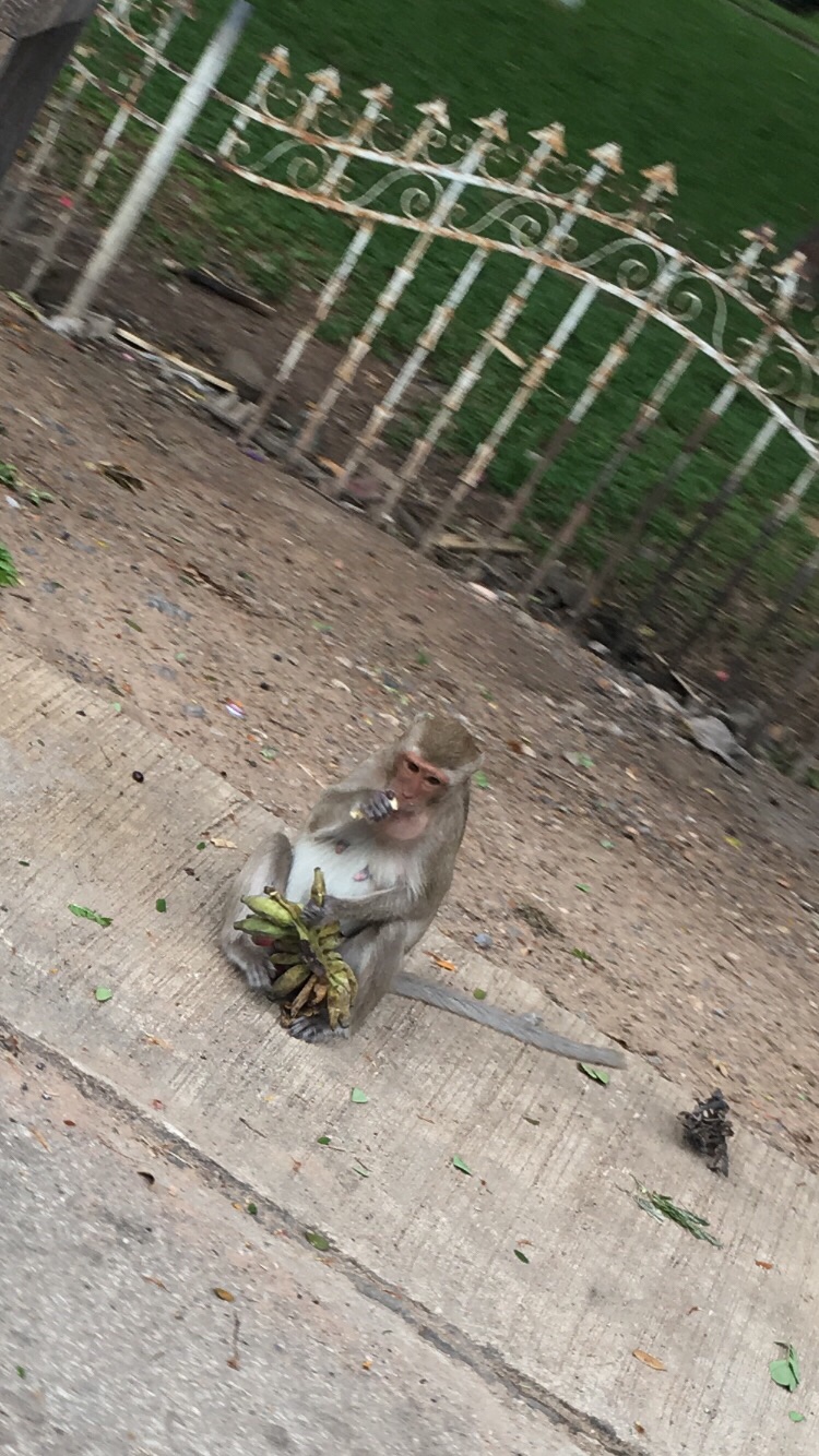 The next morning, a really sweet gentleman picked me up in a Wildlife Friends vehicle. It was about a 2 and a half hour car ride South to Phetchaburi. On the way, we stopped at what is called, “monkey mountain”. It is exactly what it sounds like. This mountain is literally taken over and ruled by monkeys. Honestly just like the Jungle Book. This lush green mountain was FLOODED with Makak’s. Such a funny and insane sight to see.