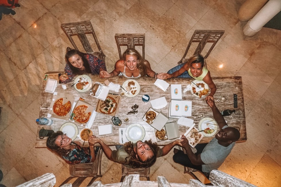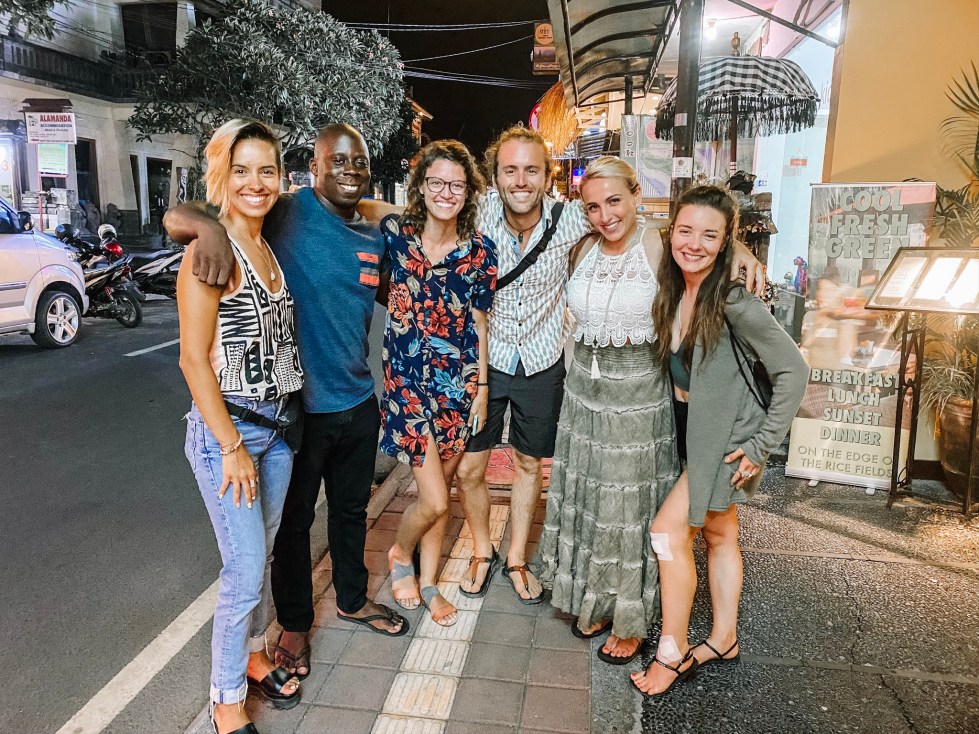 Another predicament came up within the group. We were spending Thanksgiving together in Bali, and had discussed having a meal prepared for us. By the time Thanksgiving rolled around, we did not have a clue what to do for our meal. We were all kind of in disagreeance on what we wanted to eat, which makes me giggle now seeing that we didn’t have issue around food other than this one night. This was the least traditional Thanksgiving I’ve experienced and one of my favorites. We all ended up splitting up and getting our own dishes, dishes that we could share or have on our own. We had a table covered in vegan pizza, curry, chicken skewers with peanut sauce (Basically the only thing Jon ate the entire trip), vegan pasta carbonara, naan bread, two regular pizzas, and some Asian cuisine with fried rice. I’m looking back on the photo now, and I’m loving that I just wore a sports bra to Thanksgiving dinner. My wardrobe makes about as much sense as anything else that day.