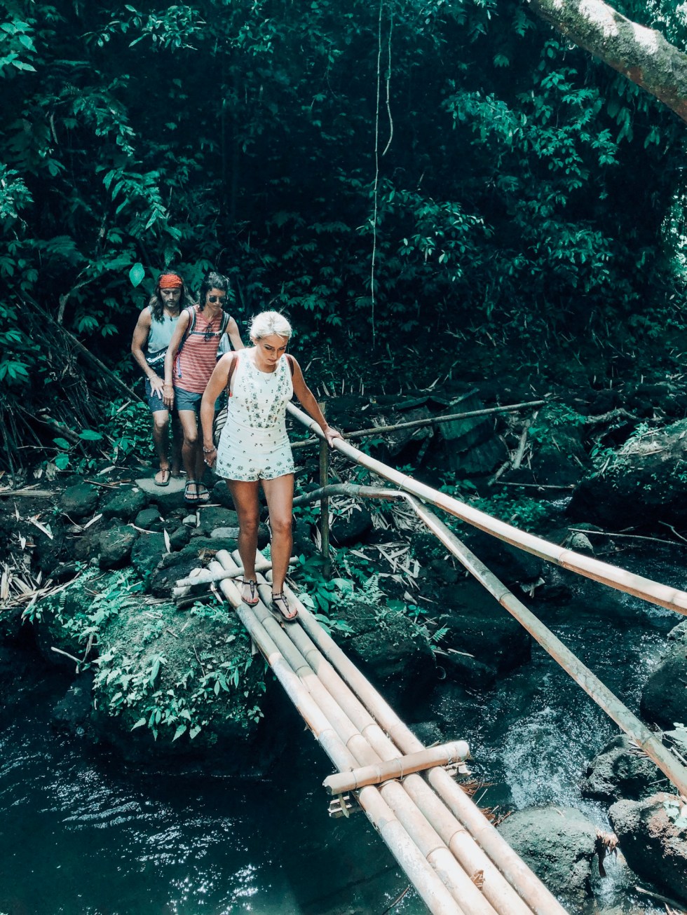 The sweetest man and woman lived there, and escorted us down. We had the place to ourselves. We crossed bamboo bridges they had built, heard bird calls that sounded like fire alarms, and walked through hanging vines and next to a creek all the way to the most beautiful waterfall. I am not going to list the name or location, but if you would like to know, reach out and I’ll give it to you! This place felt sacred. It wasn’t flooded in tourists, and felt pure. I had thought a lot about if I wanted to say where it was, but decided to keep it private. I’m sure you can find it online somewhere, but I’m keeping it sacred here.