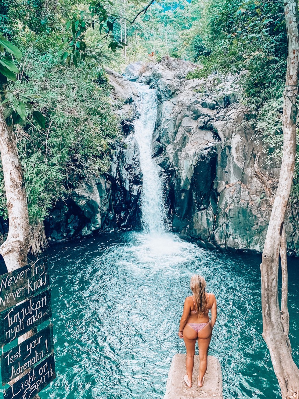 The next day, 4 of us went to Aling-Aling waterfalls in Sambangan. We paid 50,000 rupiah each to do the tour. You have to have a guide to do it. It’s a very steep and slippery trek down. I recommend water shoes. You’ll first see Aling-Aling waterfall. It’s split into two streams, with water coming down at different speeds. You are not allowed to get in the water here, as it is sacred.